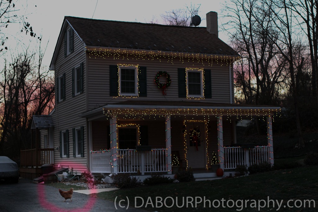In taking this photo I knew anyone looking at it would say “ok so what’s strange/unusual here?” Fair question. After all its holiday time here in NJ. It’s a house with lights on it that’s average looking. Perhaps the late day lighting? Good possibility.