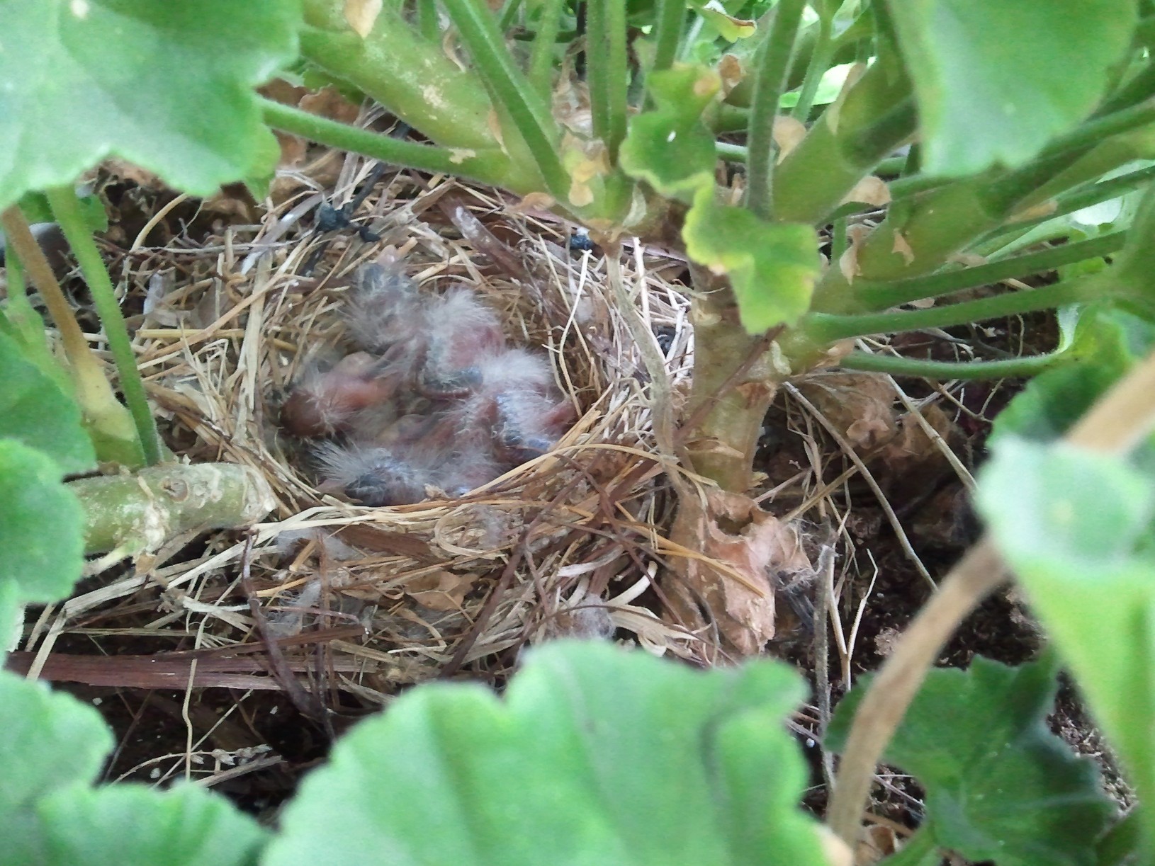 Here’s an updated photo of the bird nest (Finches?) in the from of my house in the hanging flower pot. There were six (6) eggs. As you can see they hatched but I’m not sure if there’s six little ones in there. It just looks like a sea of humanity!
