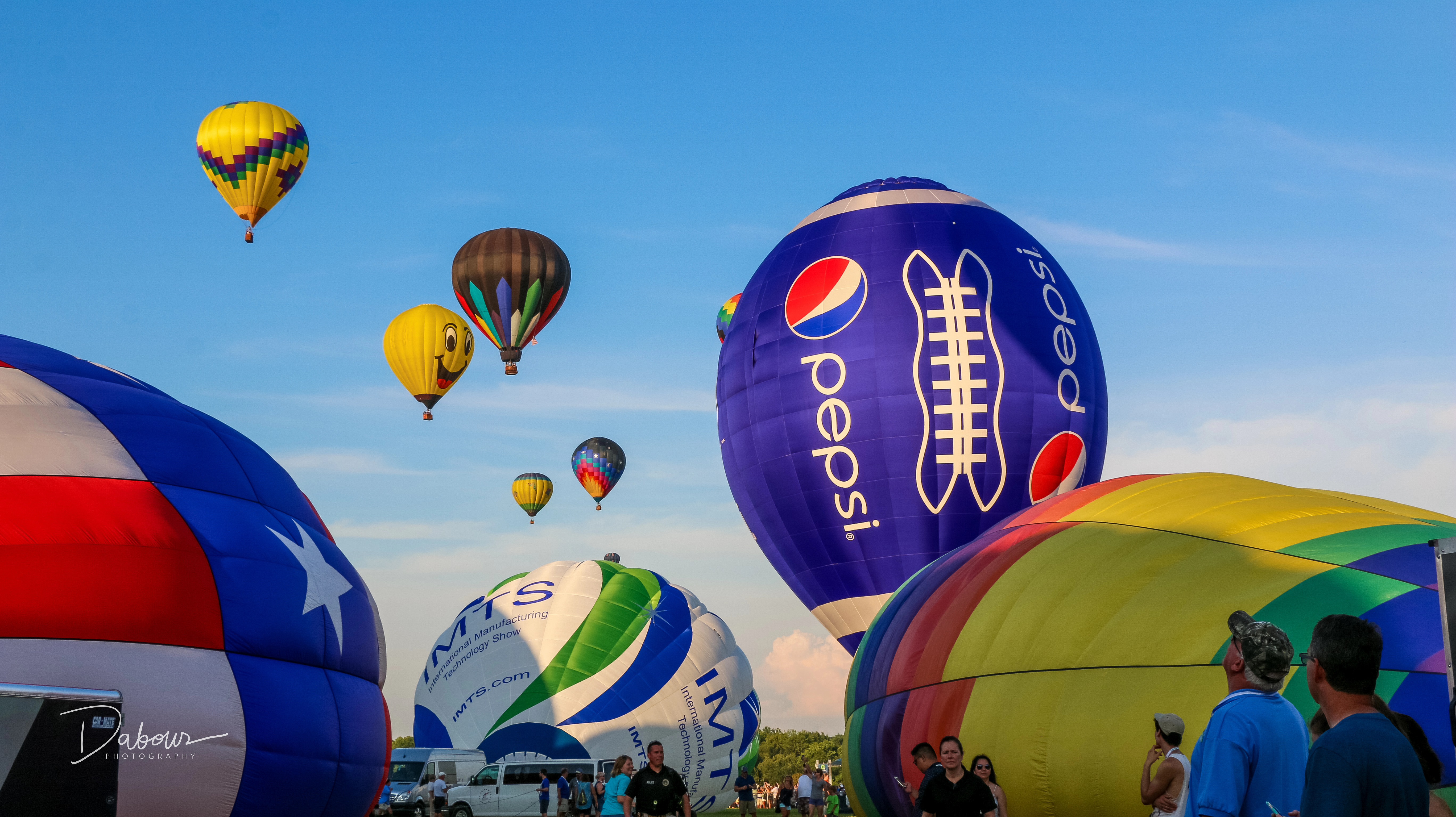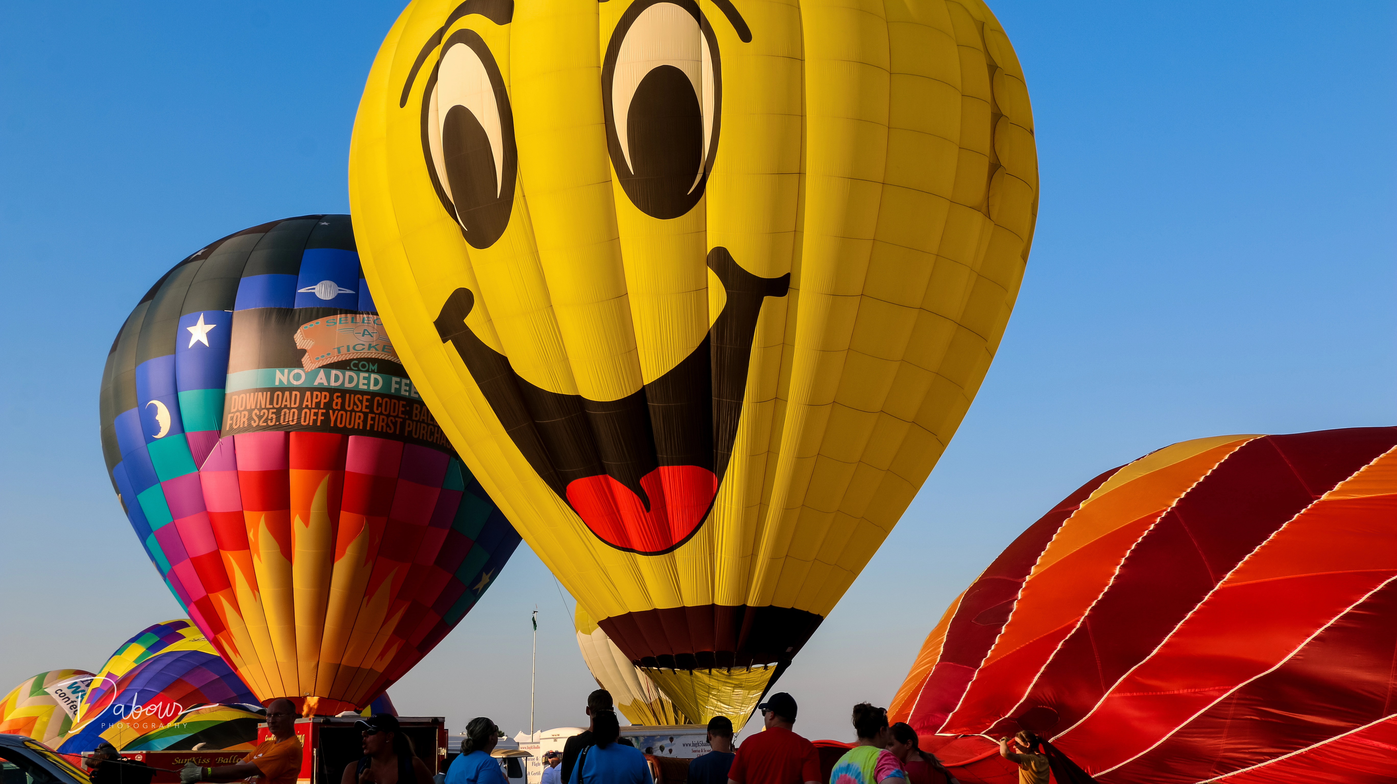 A photo tip I can pass along about photographing hot air balloons is try and have the sun at your back if possible. This will give you the best sky and light on the balloons. This is not always easy so just do what you can.
