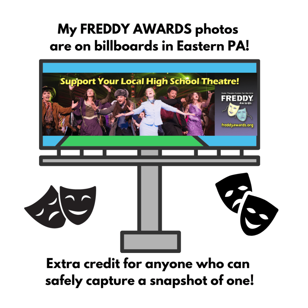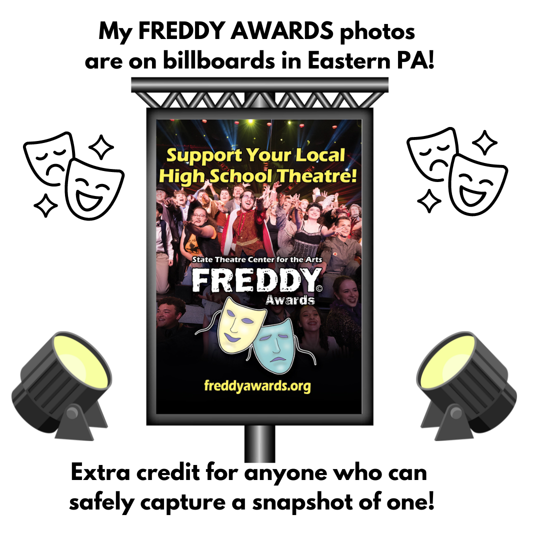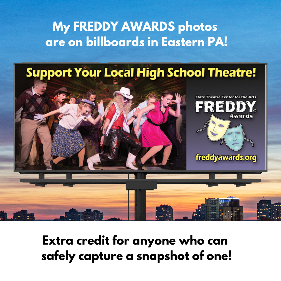 I’ve had the pleasure of being the official photographer of the Freddy Awards for over 10 years at the State Theatre in Easton, PA. A few of my photographs from last year’s award ceremony are being featured on area billboards.