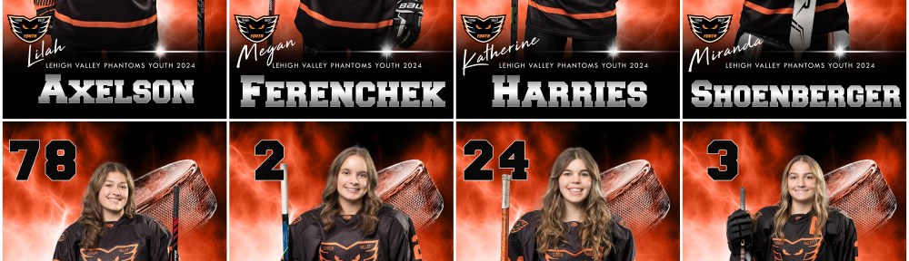 I created another set of senior banners for the Lehigh Valley Phantoms Youth ice hockey league – this time for the girls 19U senior team! They were a great group to photograph.