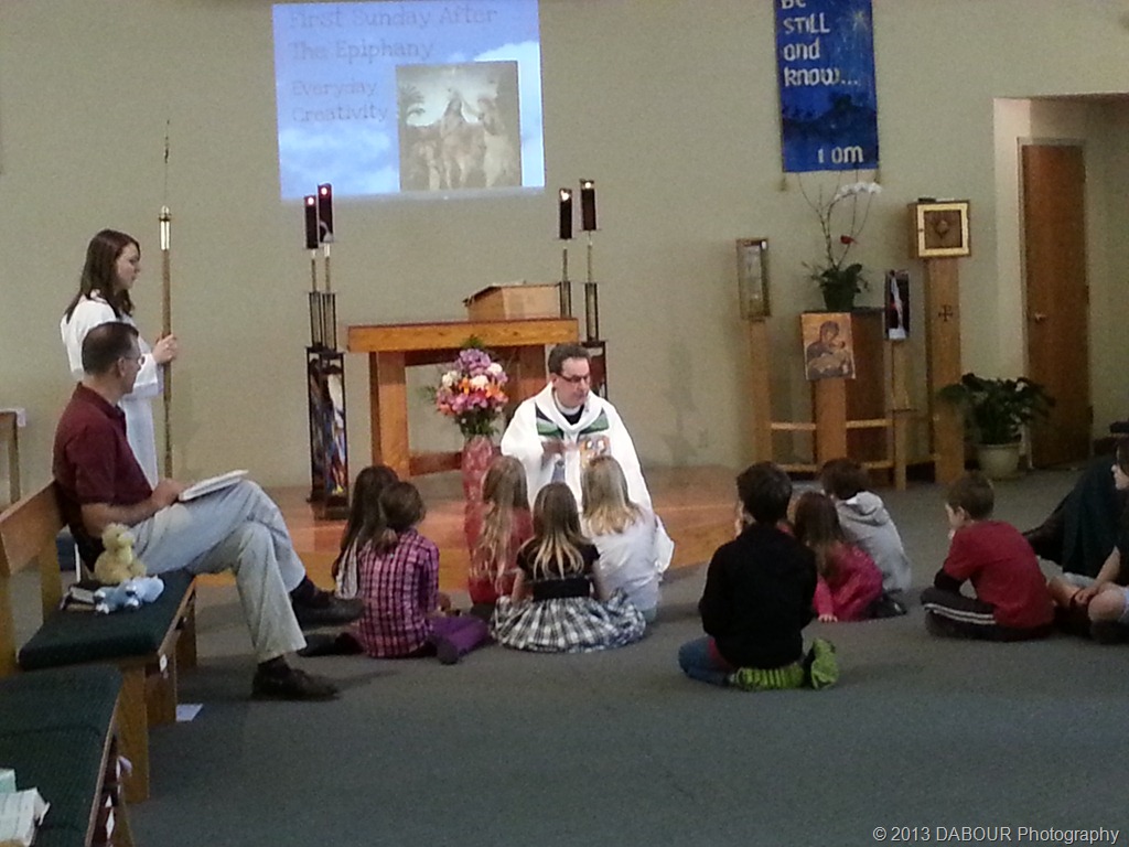What caught my eye was Fr. Phil was illuminated nicely from a light above and I wanted to try and capture the moment. He was giving a sermon to the children.