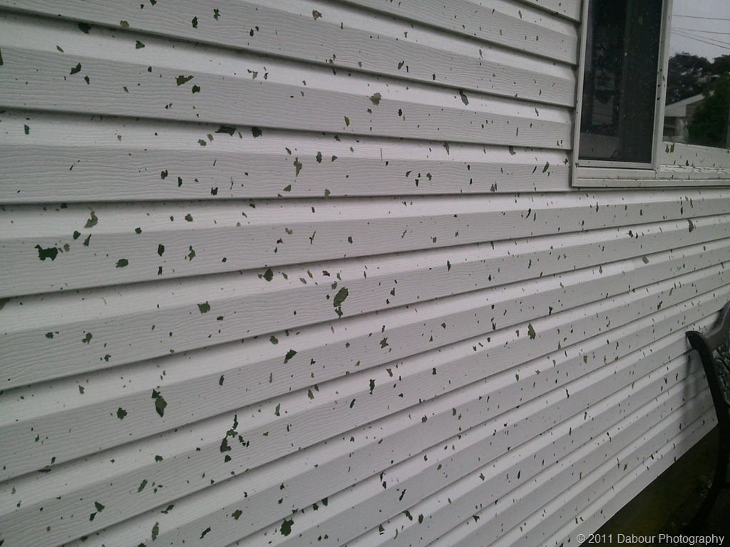 I wanted to post more pictures from the Irene damage but forgot. One of the strangest is what appears to be the wallpapering of shredded leaves on all outdoor surfaces. This goes all the way up to the roof! This just goes to show you how incredibly strong the winds were and the combined rain acted to paste them onto anything and everything.