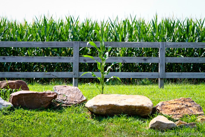 This picture sparks the controversy of which came first: the chicken or the egg. Was it planted and grew or did it just occur naturally. I’m thinking naturally. The stones it is growing near were put their over the winter or early spring. I’m thinking a corn cob was included in the dirt pile they were grabbed from and just got lucky.