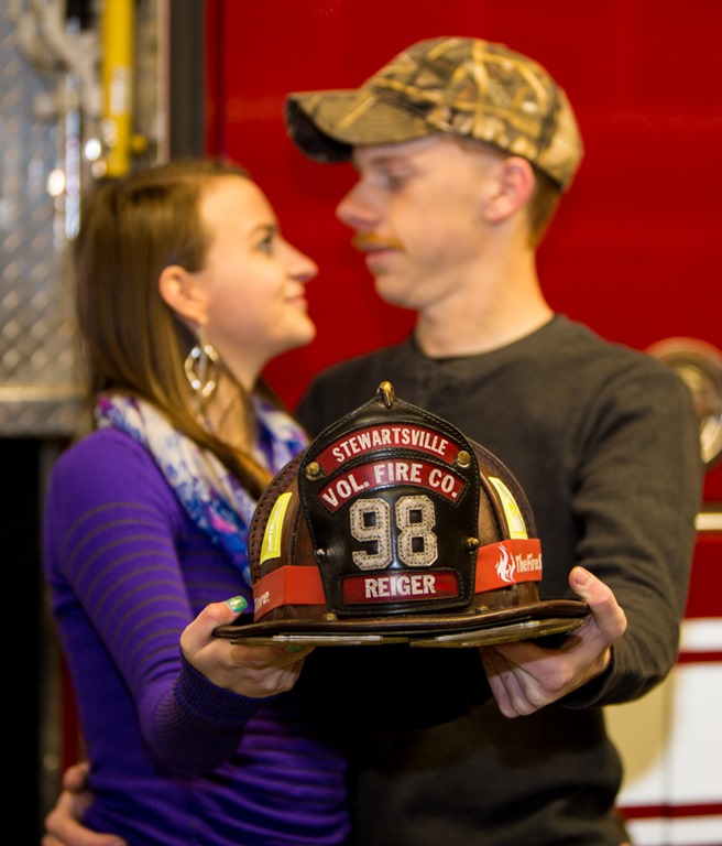 Cody is a fireman at Stewartsville Vol. Fire Company and Brittany is on the auxiliary. They both spend a lot of time at the fire house so it seemed only natural to create some of the photos there.
