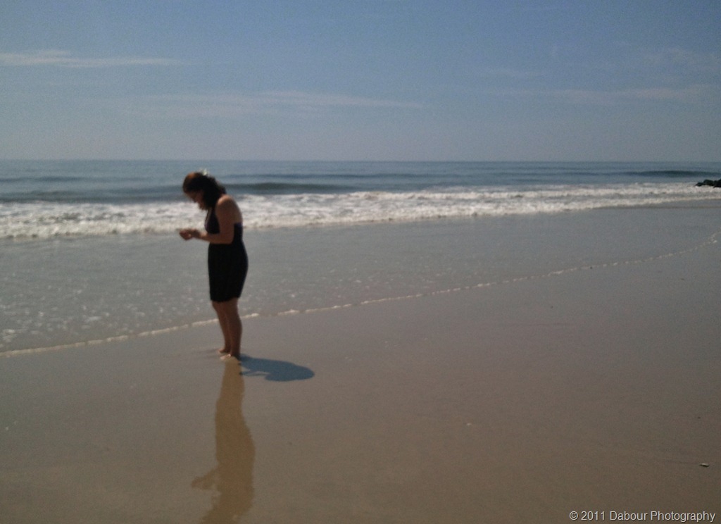 My oldest daughter was investigating these baby clam creatures that were washing up in the tide and trying to burrow themselves in the sand before they were noticed. When you pick them up in your hand you can actually feel them moving!