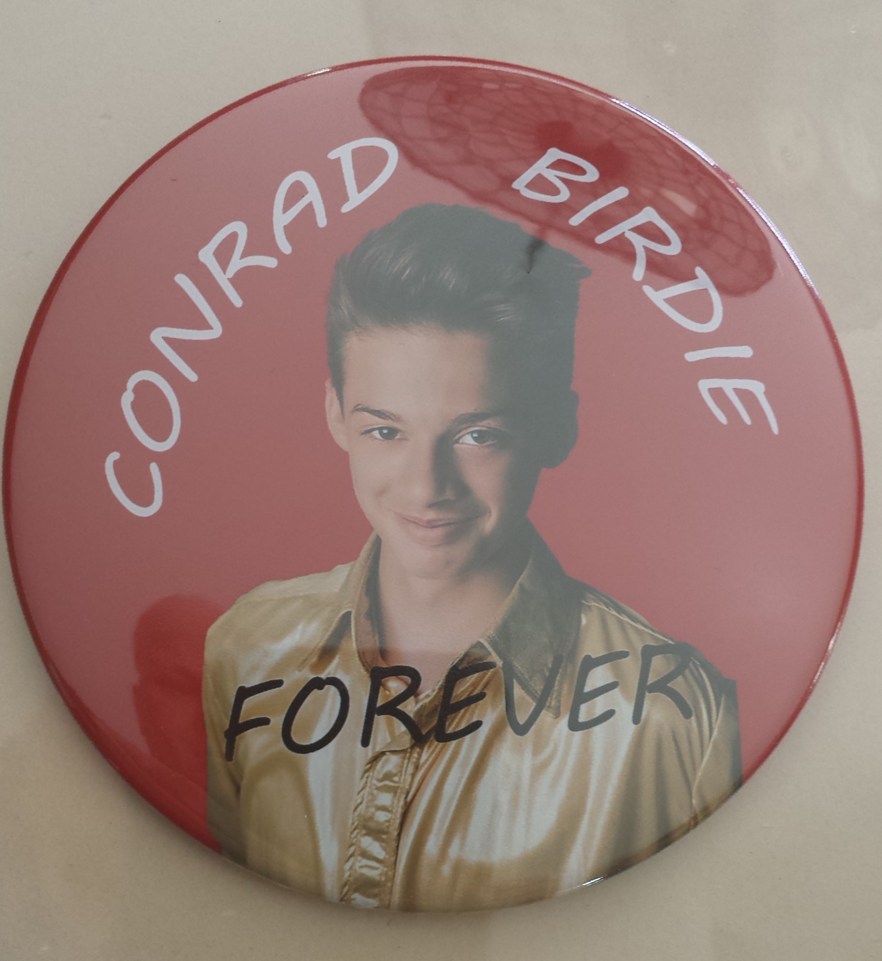 For SPAC’s upcoming production of “Bye Bye Birdie” they need several photography props for the show. The first one I created was a button for Conrad Birdie that all his zany teenage fans wear in the show. This photos was taken from a cellphone and has several reflections in it but you get the idea!