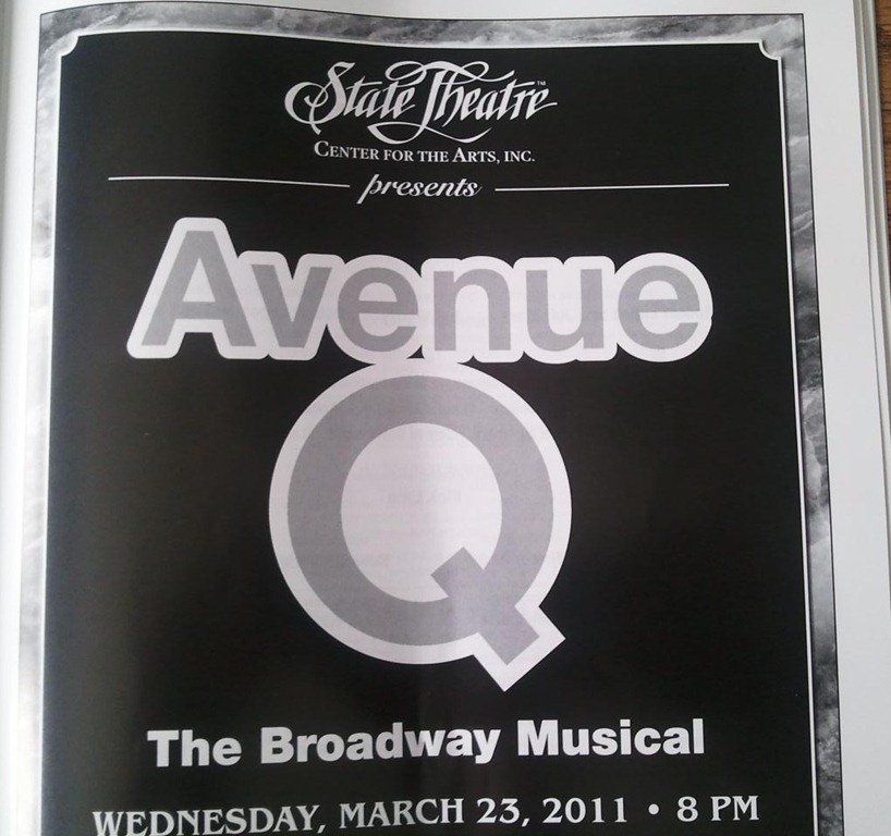 I had the pleasure of going to see “Avenue Q” last night at the State Theatre. The trip there was accompanied by rain, then sleet and snow and a thunderstorm! On the way out we were greeted by snow and a slushy accumulation on the sidewalks.