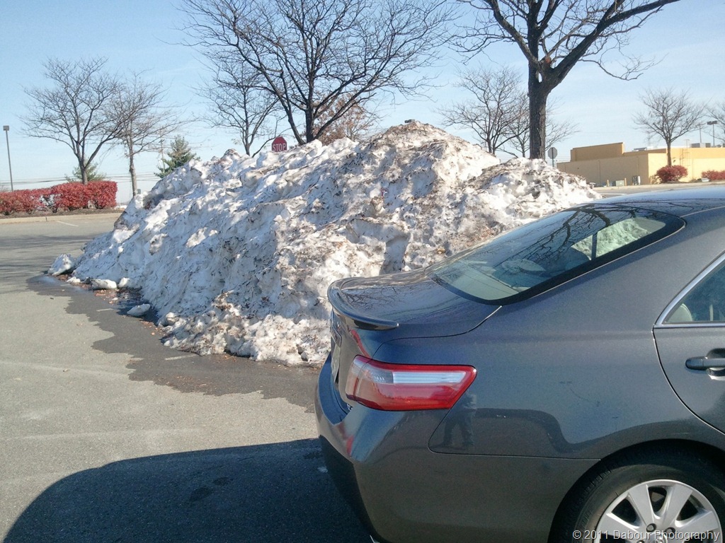 Out local mall is famous for making piles of snow big enough to block out the sun. So here 9 days after the unusual October snowstorm, here is one of the larger piles. I included my car to show the scale.