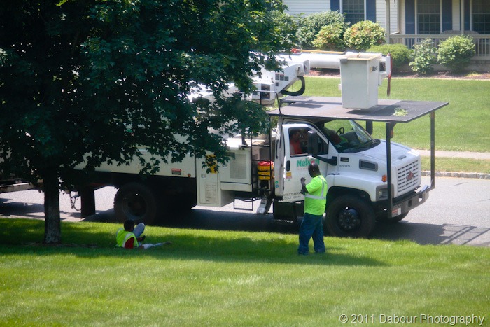 A team of tree trimmers has been in the area for a couple of weeks now trimming trees around power lines. This of course is a good thing to keep electricity flowing during storms. But I was surprised to see them pull up in front of my house. Why? My electric service is underground! I soon realized they wanted to take advantage of the fine shade my maple and oak trees provide on the front lawn. I didn’t mind as long as they keep their chain saws in the truck!