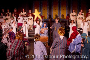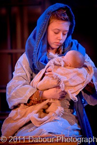 Its amazing how the miracle of theater works. Just a few moments before this picture was taken, was a picture of a teenager looking beat up and disgruntled carrying a baby doll by the foot.Mary With Child A few moments later with good acting, props, wardrobe and direction, turns into the peaceful moment.
