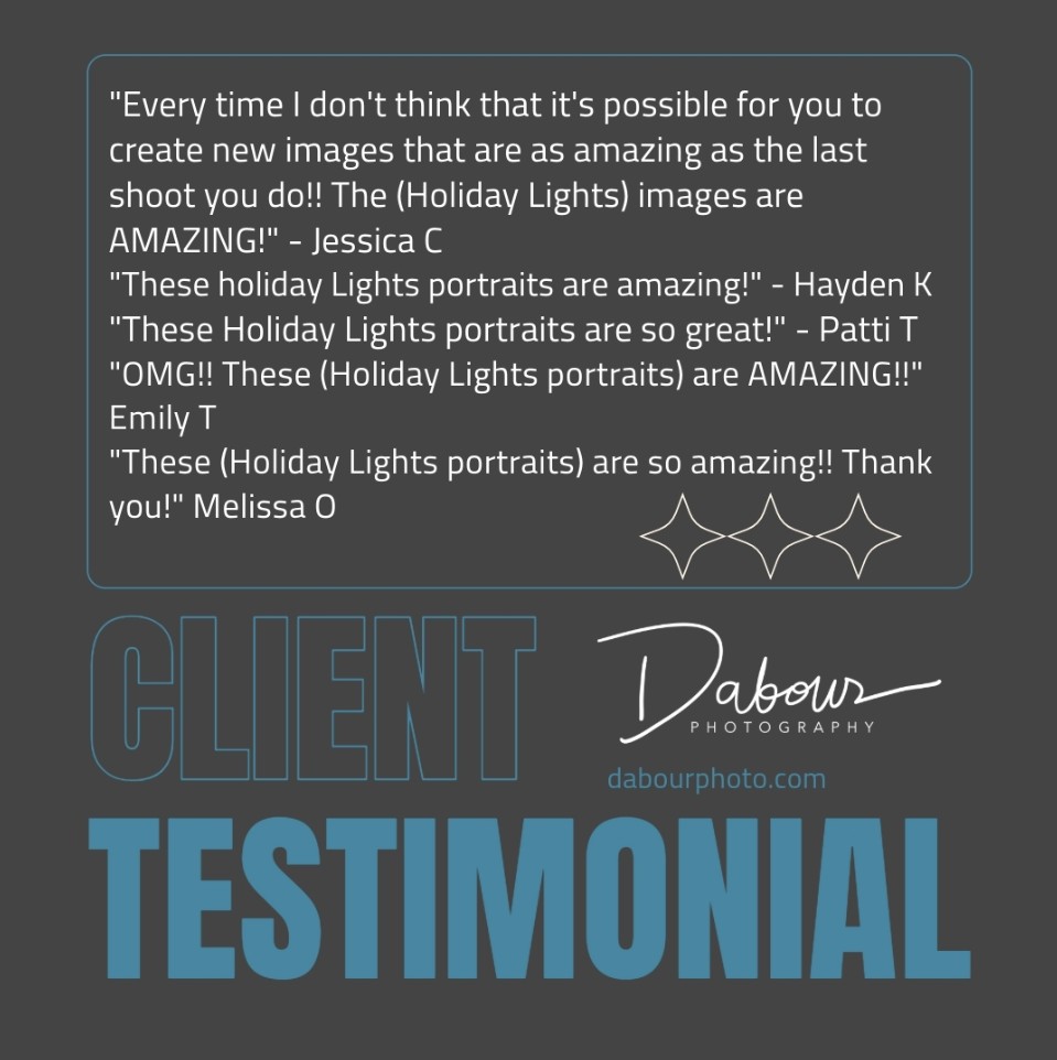 Family Portraits Made Easy! “Thanks Dale & Dave for a very family friendly portrait session! We can’t believe how easy it was to custom tailor a family portrait package in an hour. Thanks for such a great selection of Holiday cards, too! Count on us to be repeat customers. You are true professionals!” – S. Tanzler